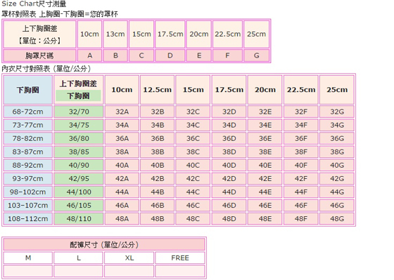 尺寸:32B/34B/36B/38B/32C/34C/36C/38C/32D/34D/36D/38D/40D